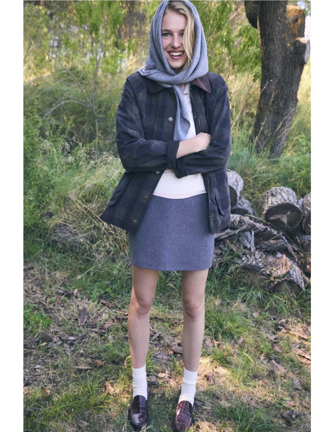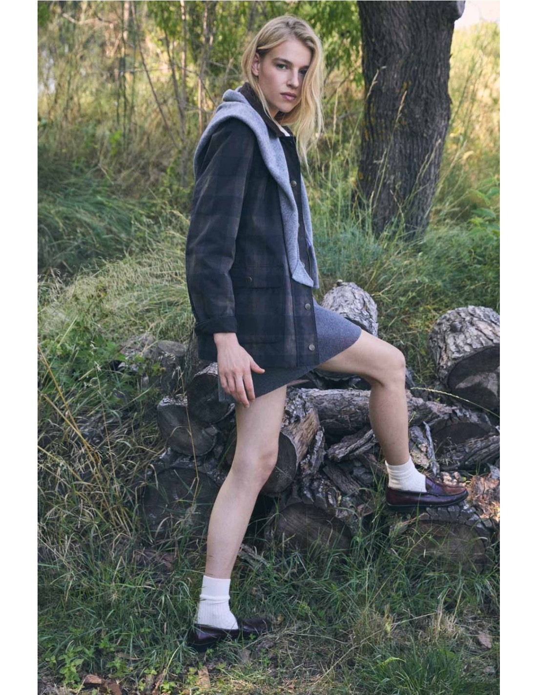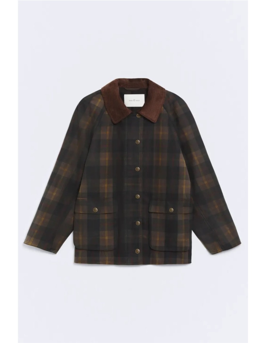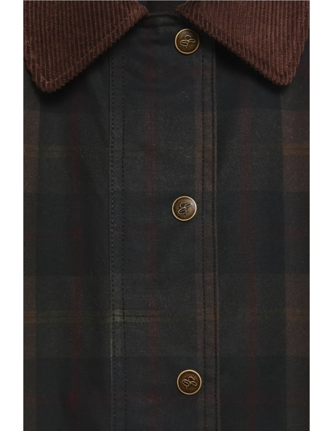 Chaqueta de algodón BCI con cuello de pana a contraste, estampado a cuadros de la marca Ese O Ese. Cierre con cremallera dorada y botones a presión mate.