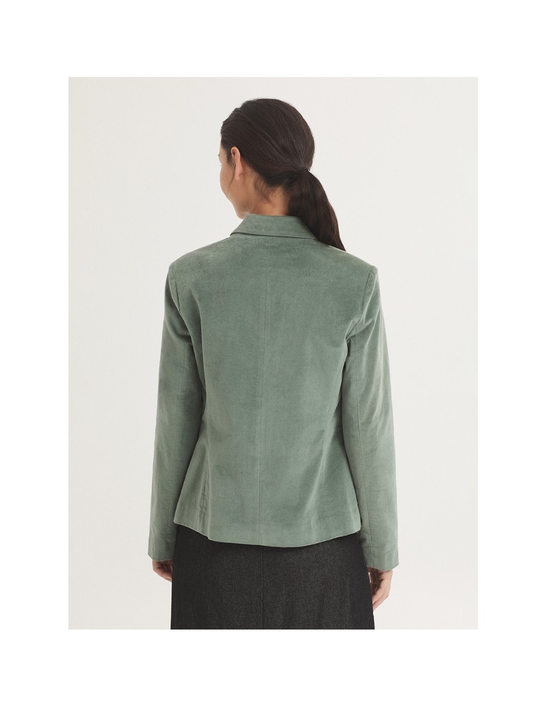 Blazer entallado en tejido pana lisa de algodón con stretch. Cuello solapa y botonadura frontal. Bolsillos con tapetas. Manga sastre. Forrada. Perfecta para combinar con el pantalón a juego y crear un total look perfecto.
