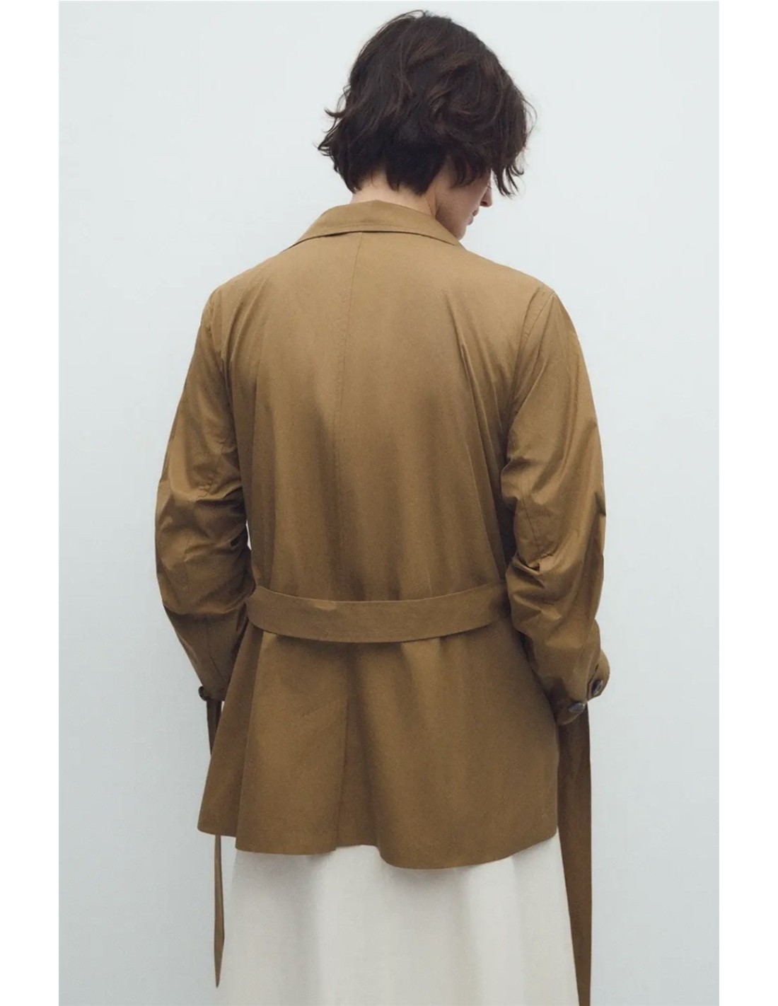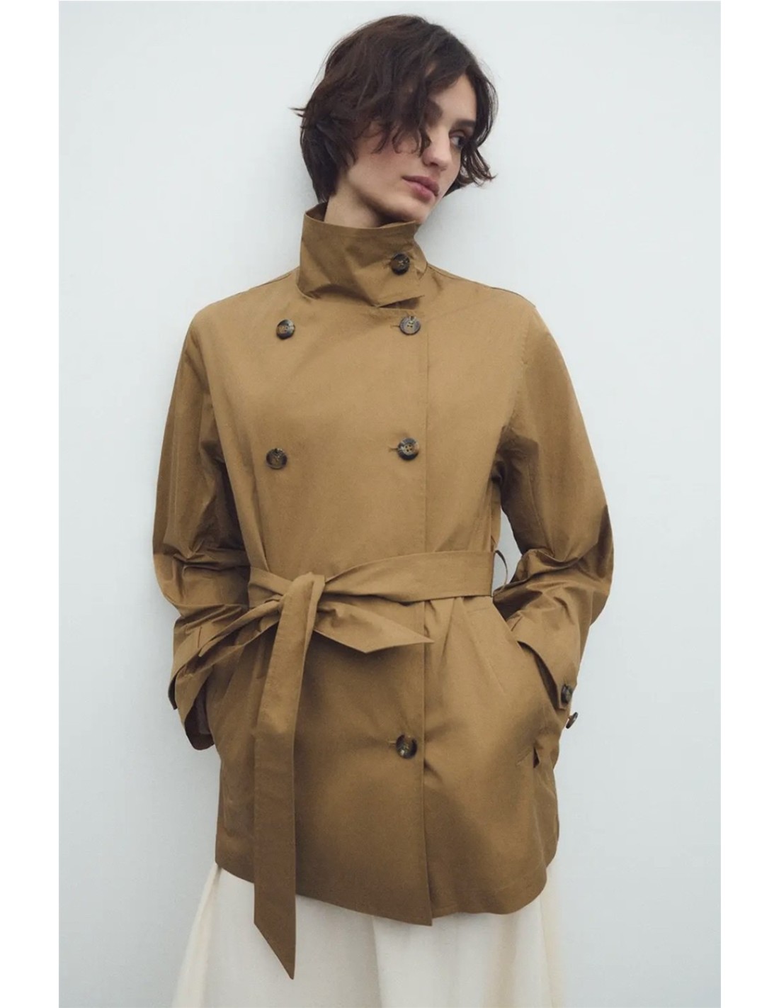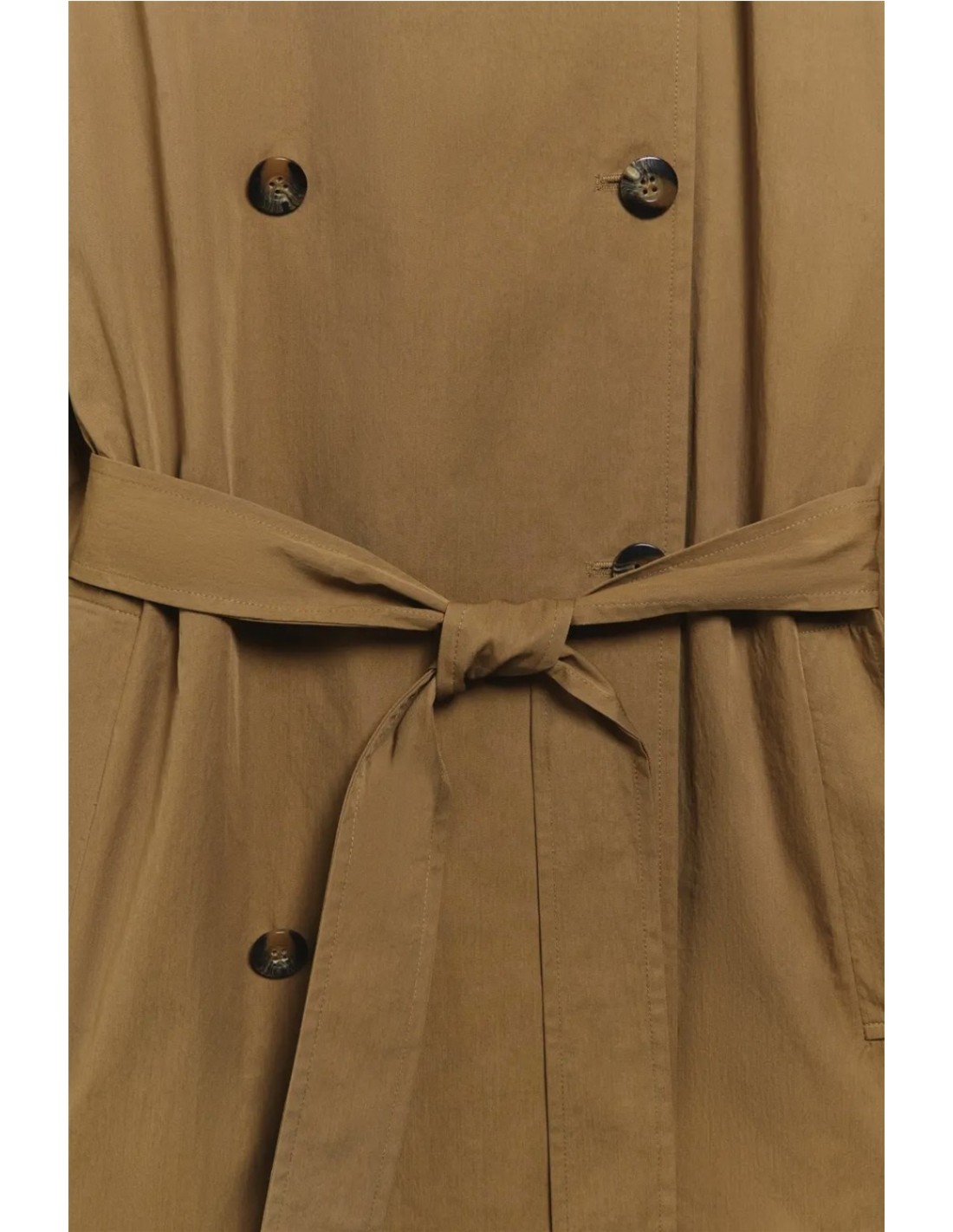 Trench midi de doble abotonadura con cuello alto de la marca Ese O Ese. Cuenta con cinturón del mismo tono, bolsillos laterales y botones de puños y centrales a contraste.
