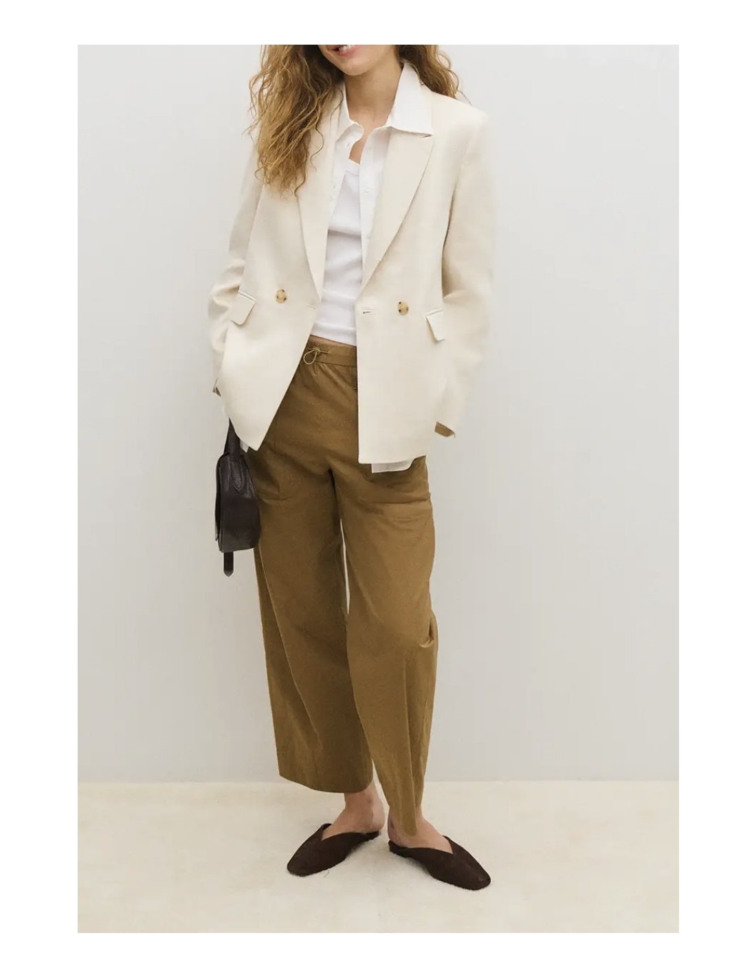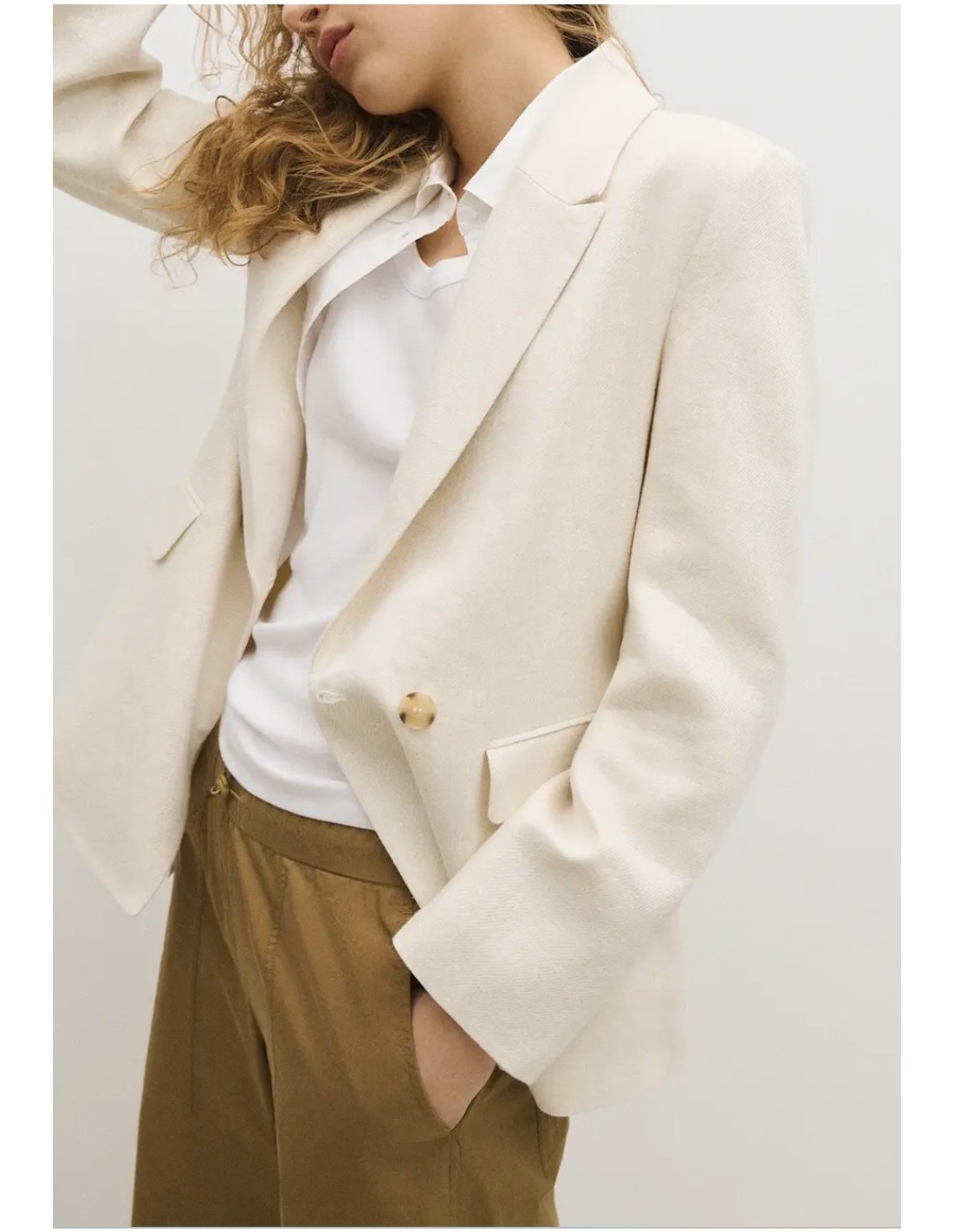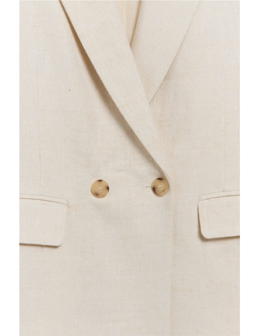 - Cuello con solapa y cierre central con doble abotonadura. - Bolsillos de solapa en delantero. - Forro interior. - En color crema. - Largo prenda para talla S: 68,2 cm.
