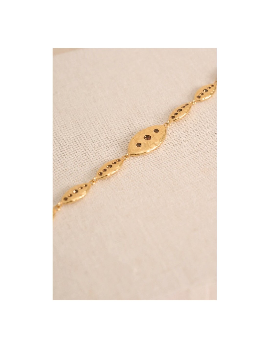 Cada eslabón, modelado a mano en latón de alta calidad y chapado en oro de 24 y 18 quilates, presenta una textura artesanal que refleja la huella del trabajo manual. Juntos crean una composición armoniosa, rica en matices y profundidad.