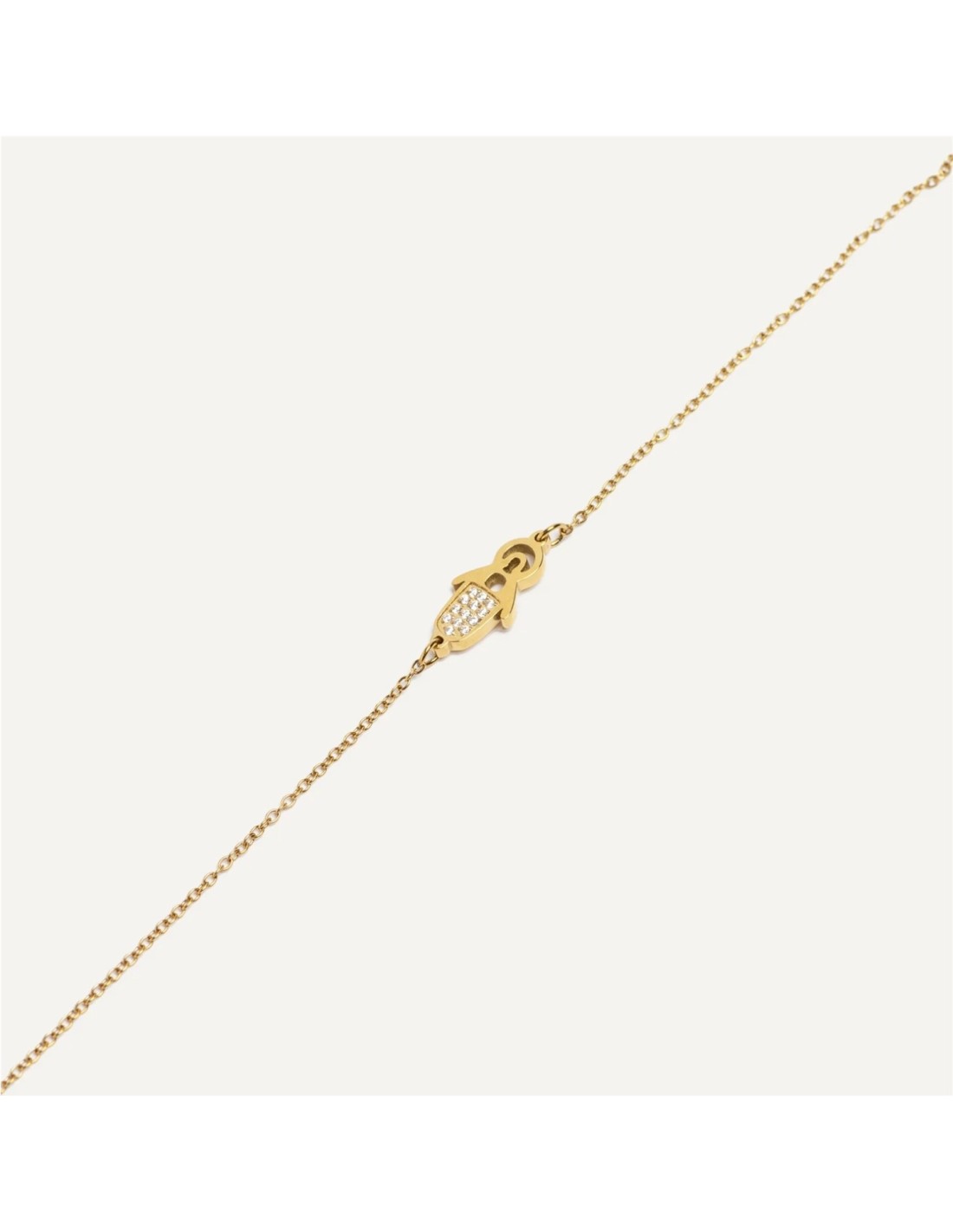 • Material: Acero inoxidable bañado en oro de 18K y Circonitas.