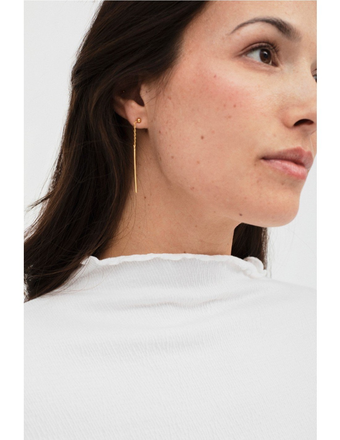 Camiseta ligera de manga larga y cuello cisne. Su textura suave y los detalles en los acabados le dan un toque único y moderno. Disponible en blanco y en negro.