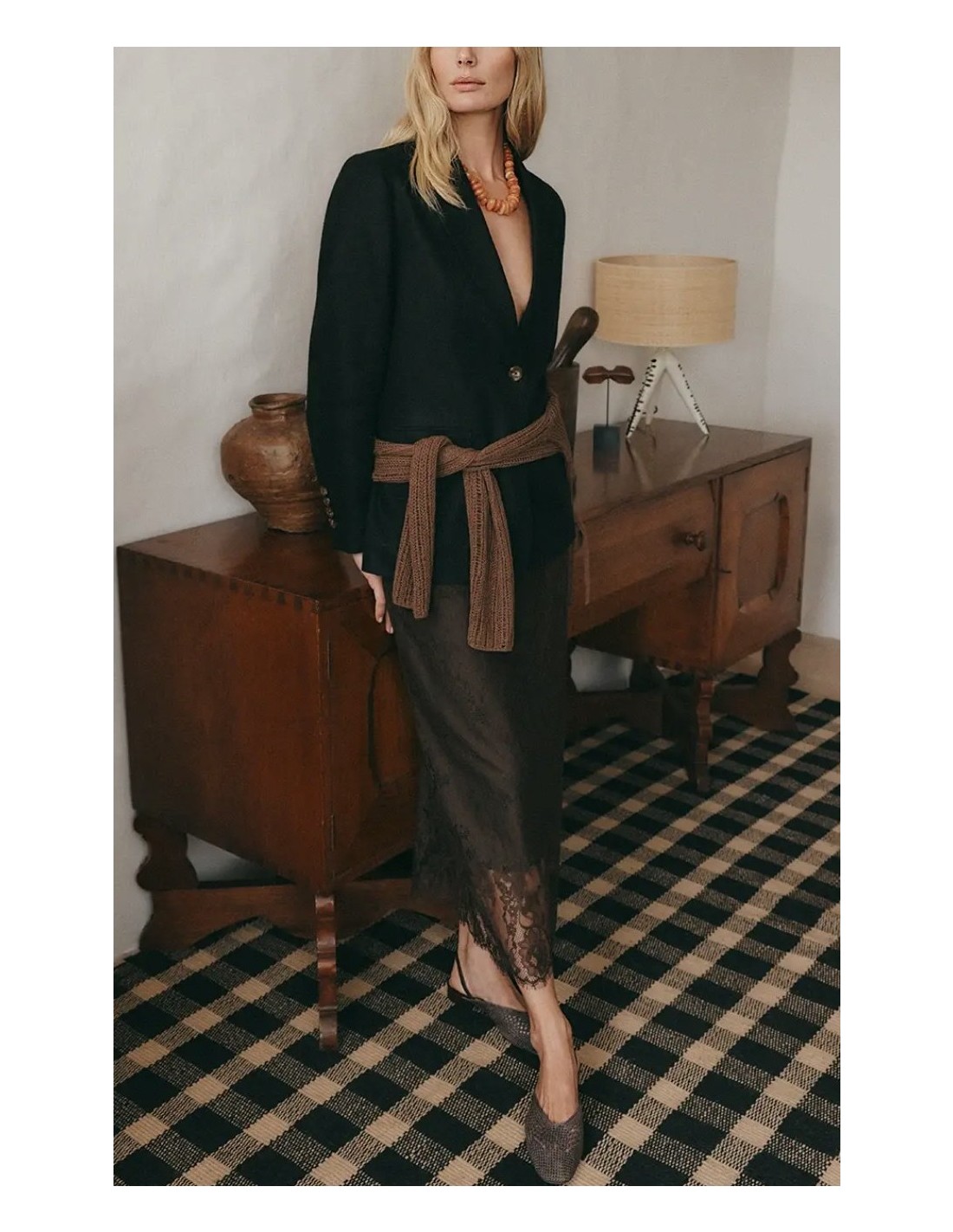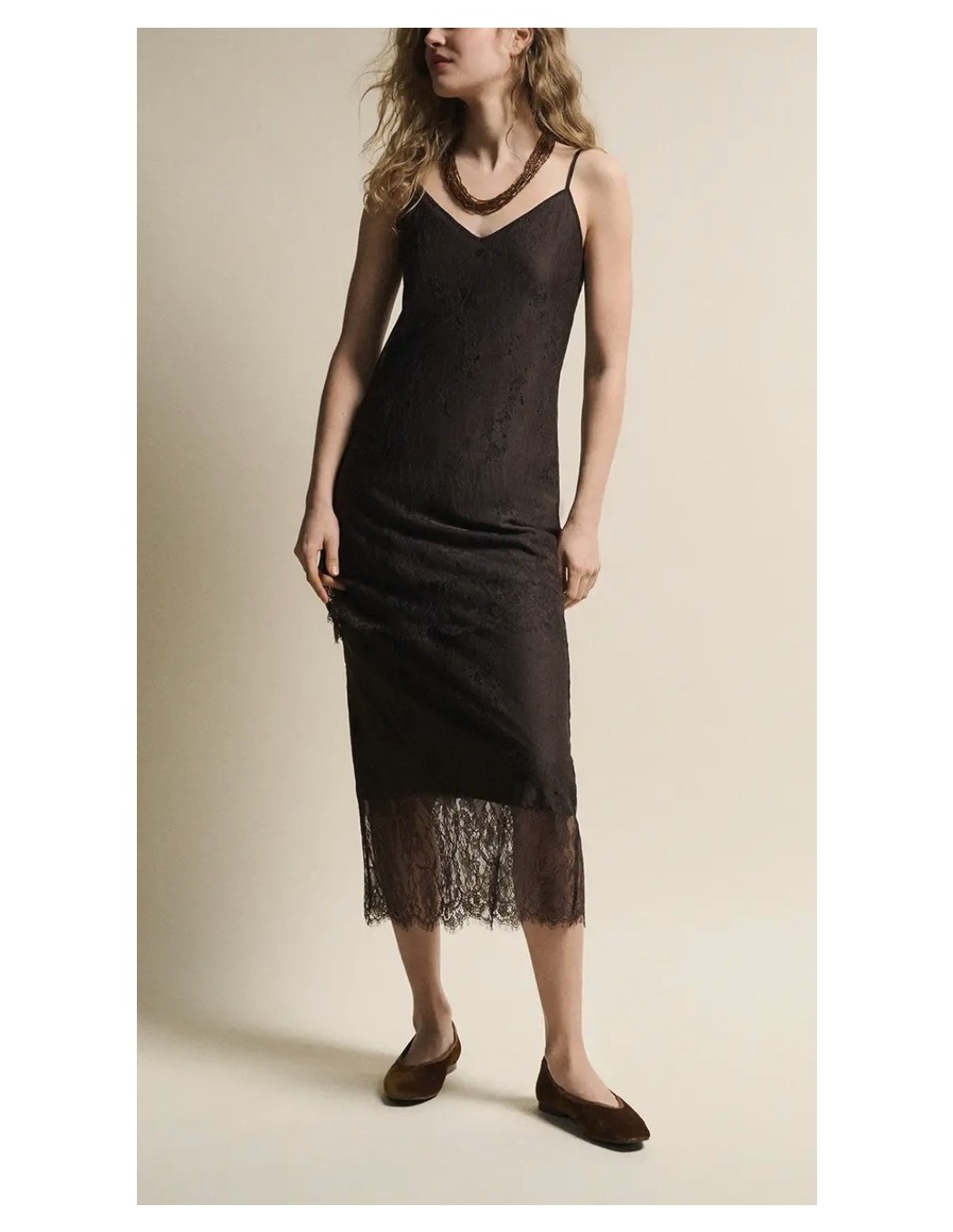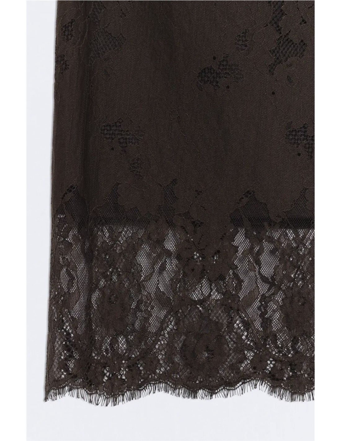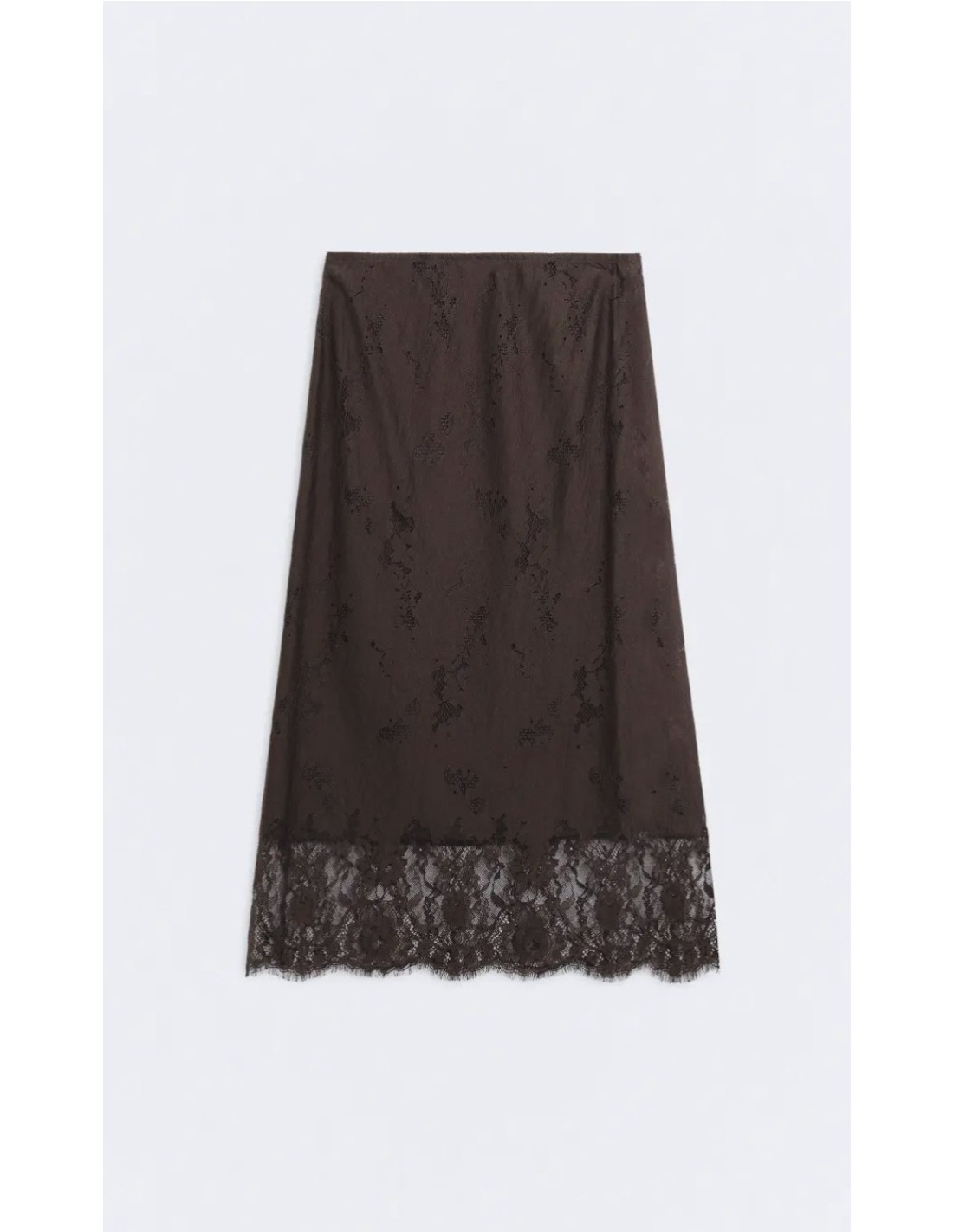Falda midi con acabado lencero en color marrón chocolate, de la marca Ese O Ese.