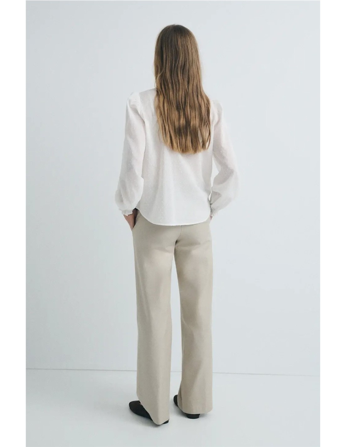 Pantalón chino de pierna ancha de la marca Ese O Ese. Sarga mezcla de tencel y algodón BCI. Corte sastrero. Bolsillo lateral. Gancho interior. Disponible en Verde y en Beige