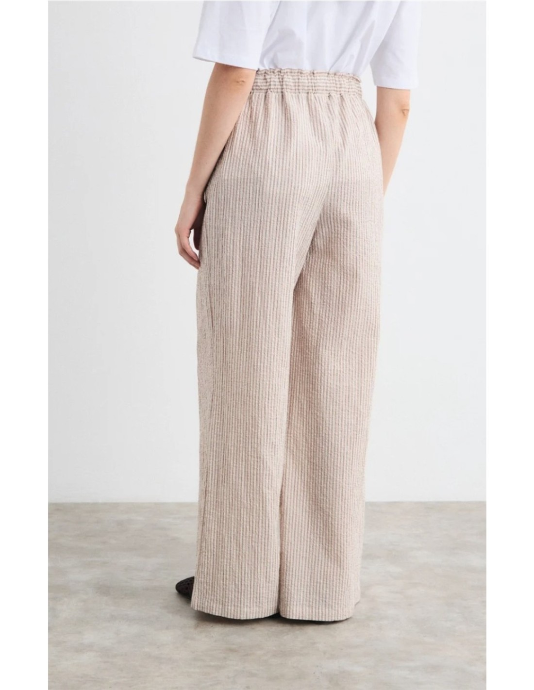 Pantalón fluido de rayas con goma en la cinturilla y bolsillos diagonales de la marca Mus & bombón. Combínalo con la camisa Eclipse para un total look fresco y elegante.