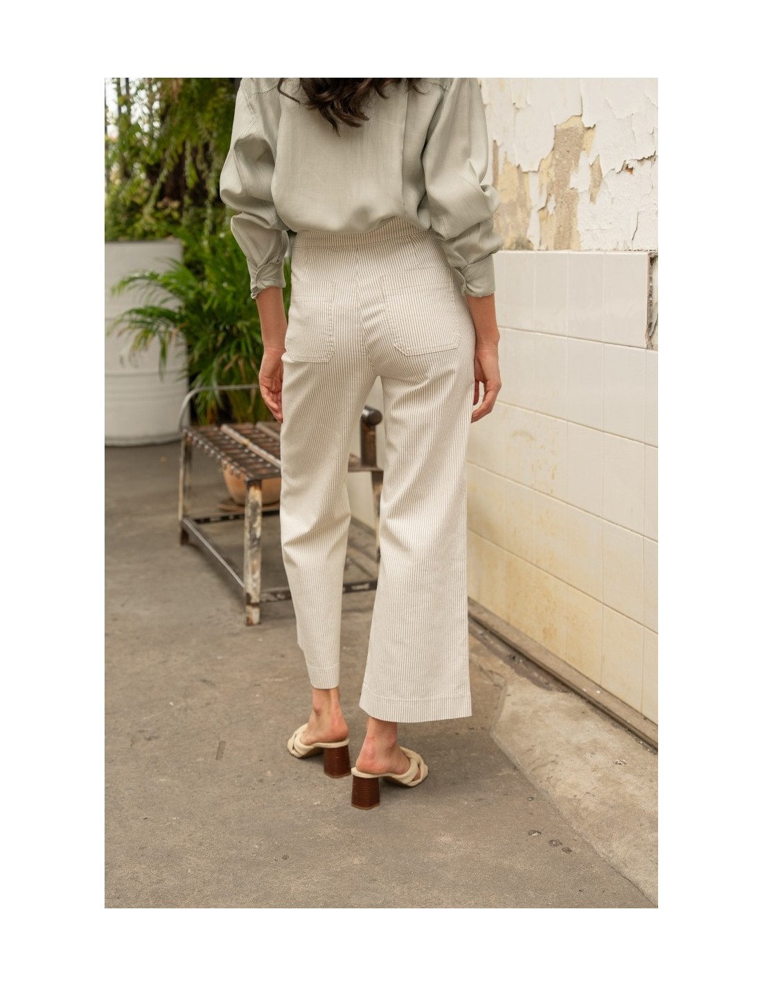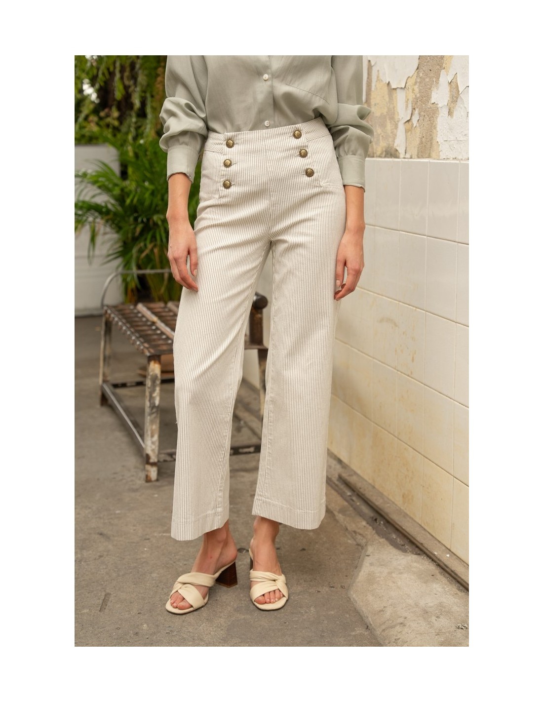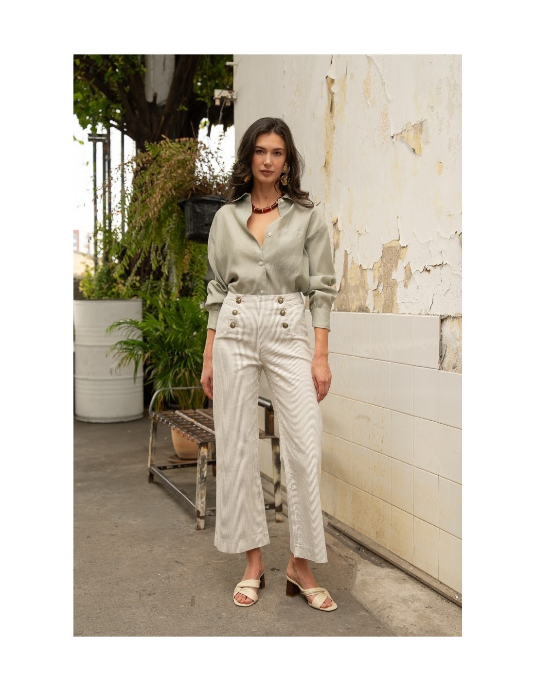 El modelo Victoria, un clásico de la marca, destaca por sus botones en el puente y su corte amplio que se ensancha desde las caderas hasta los tobillos. Es un corte que favorece a la mayoría de las figuras.
