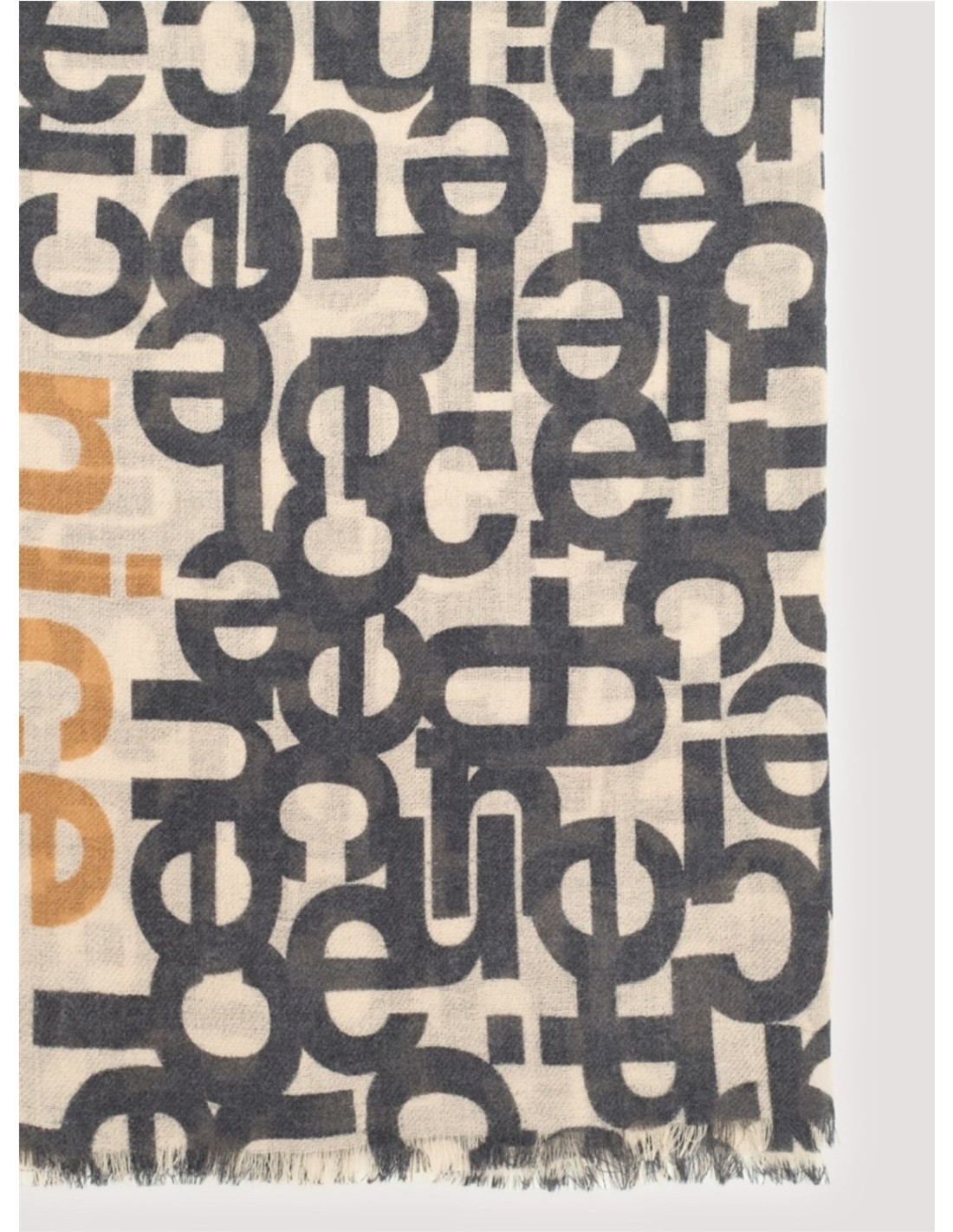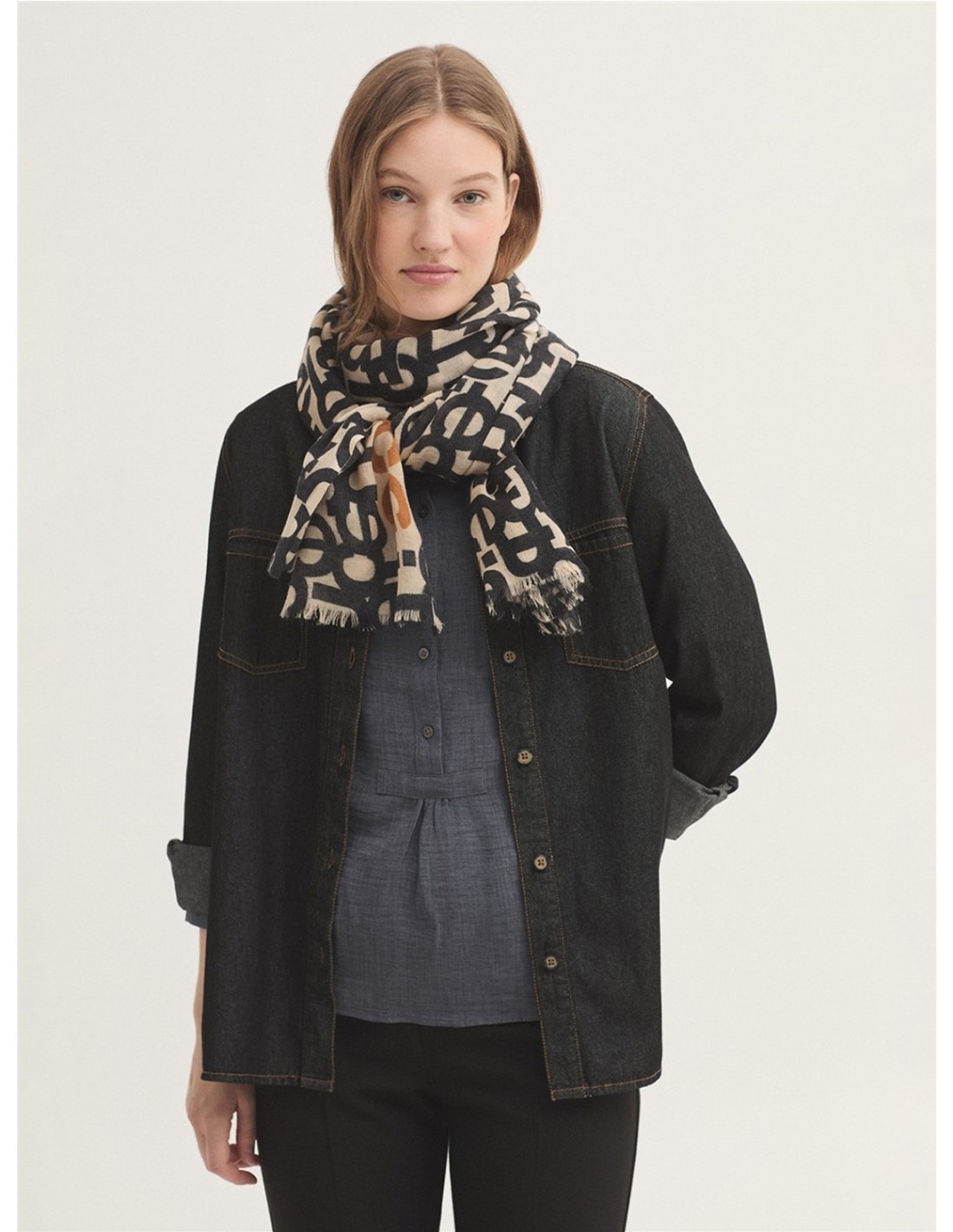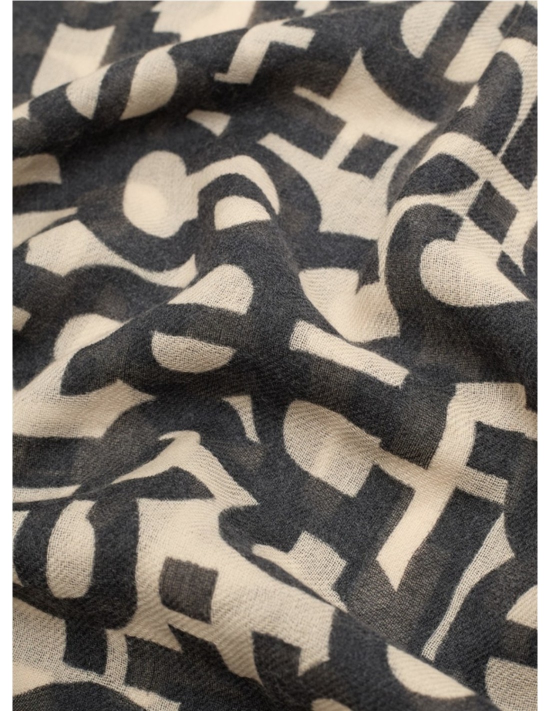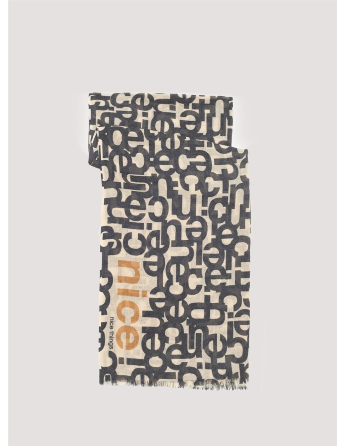 Pañuelo estampado Typography de la marca Nice Things. 100 % lana. Medidas: 70 x 180 cm.