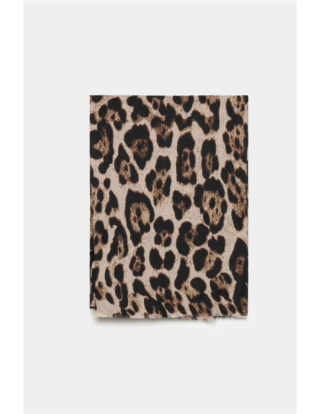 Pañuelo rectangular estampado en animal print. Medidas 90 x 180 cm.