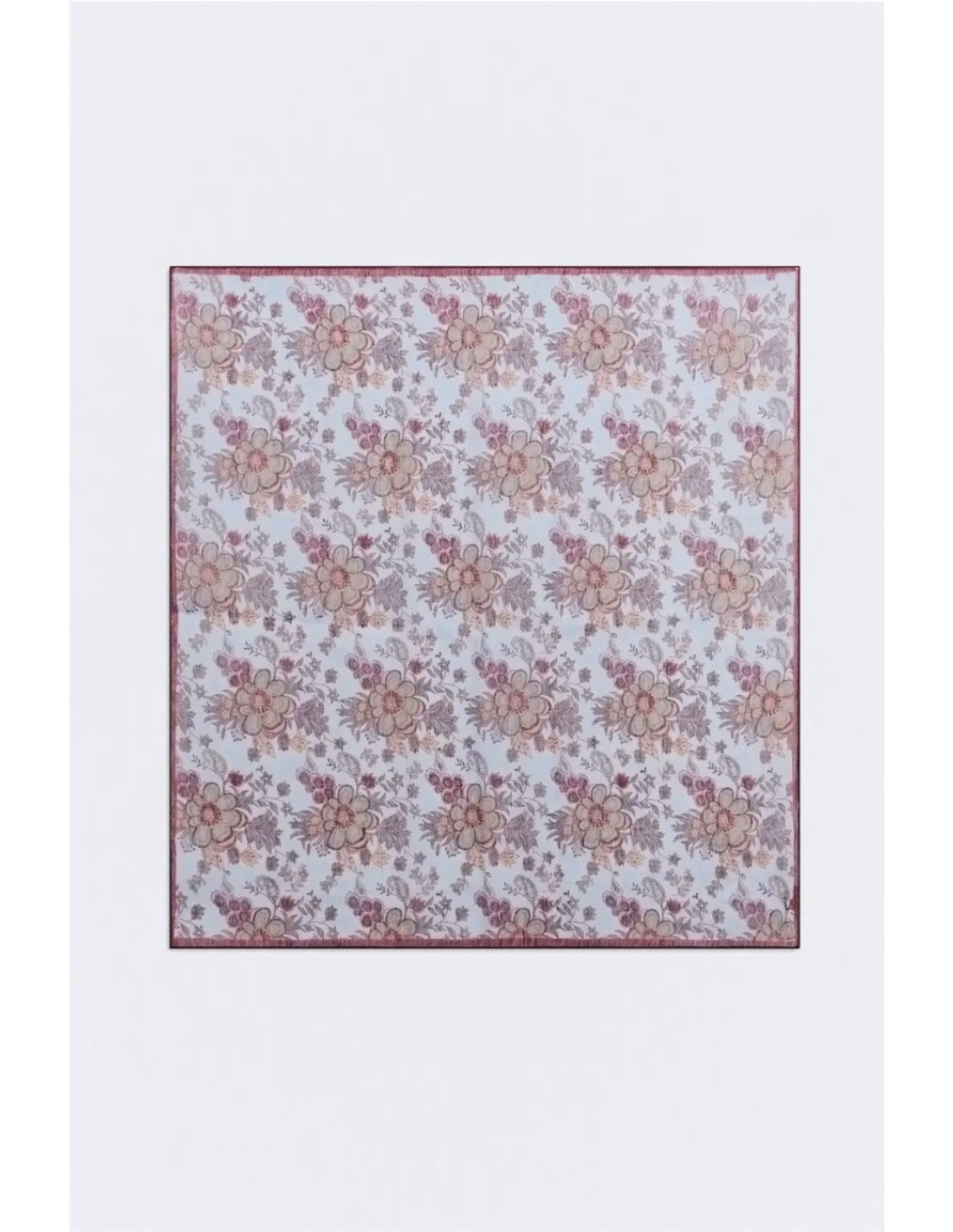 Fular de lino con mezcla de algodón de Ese O Ese. Estampado de flores sobre fondo azul. Medidas: 100 x 100 cm.