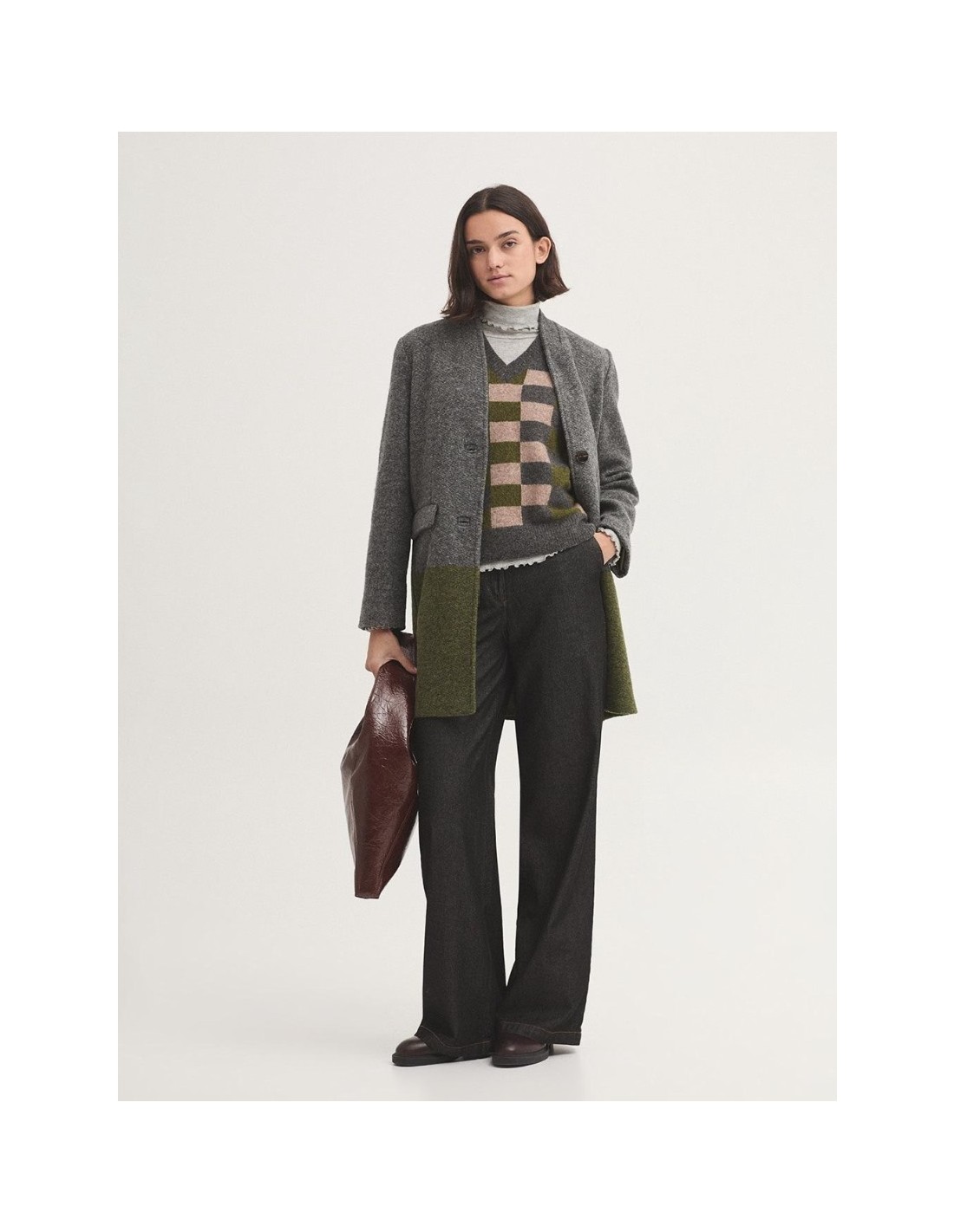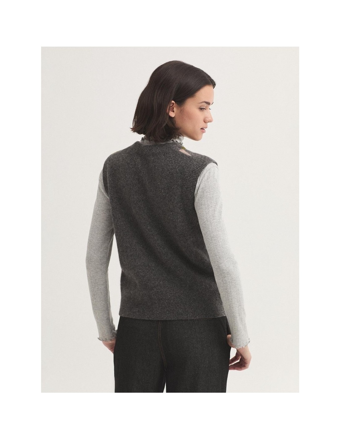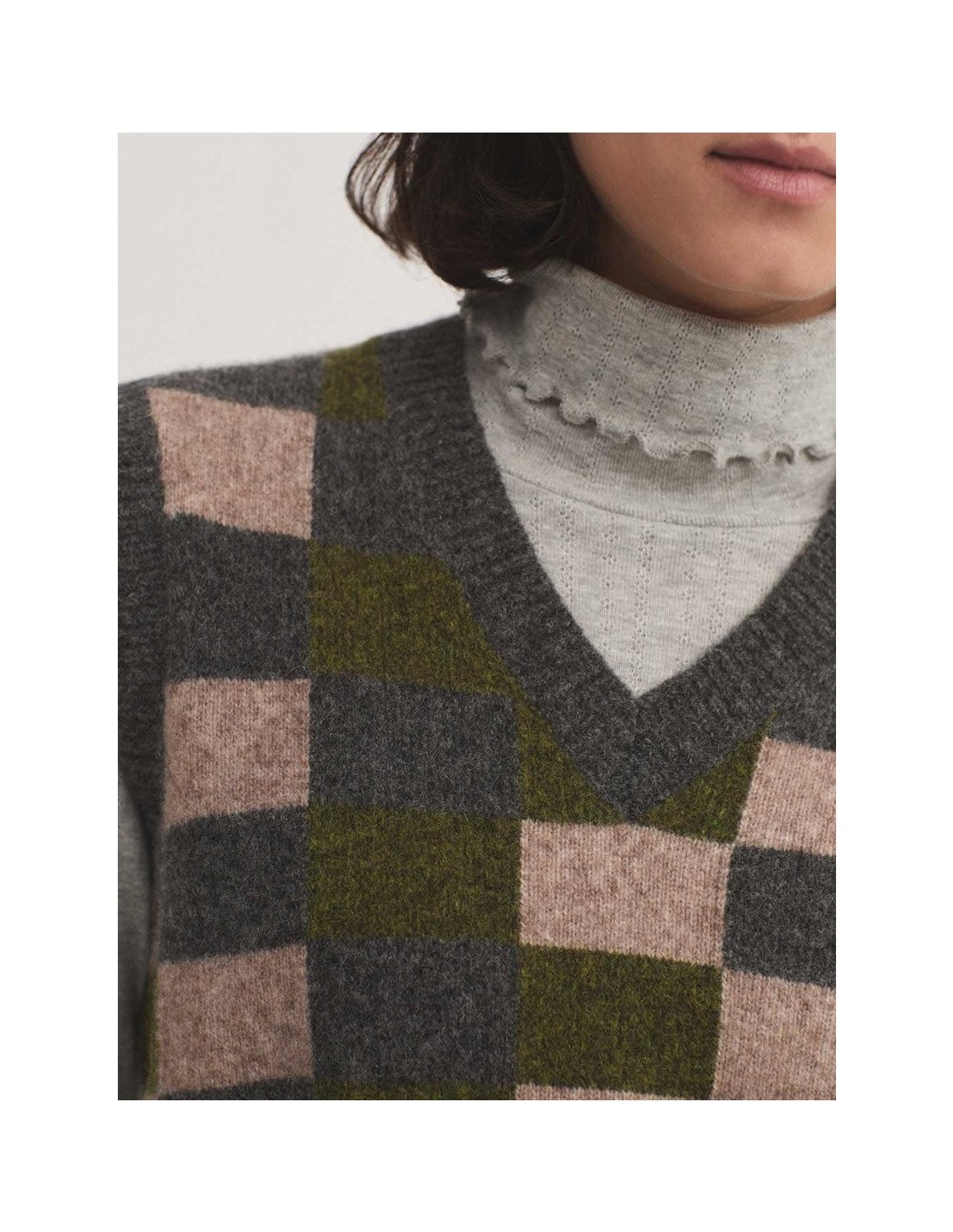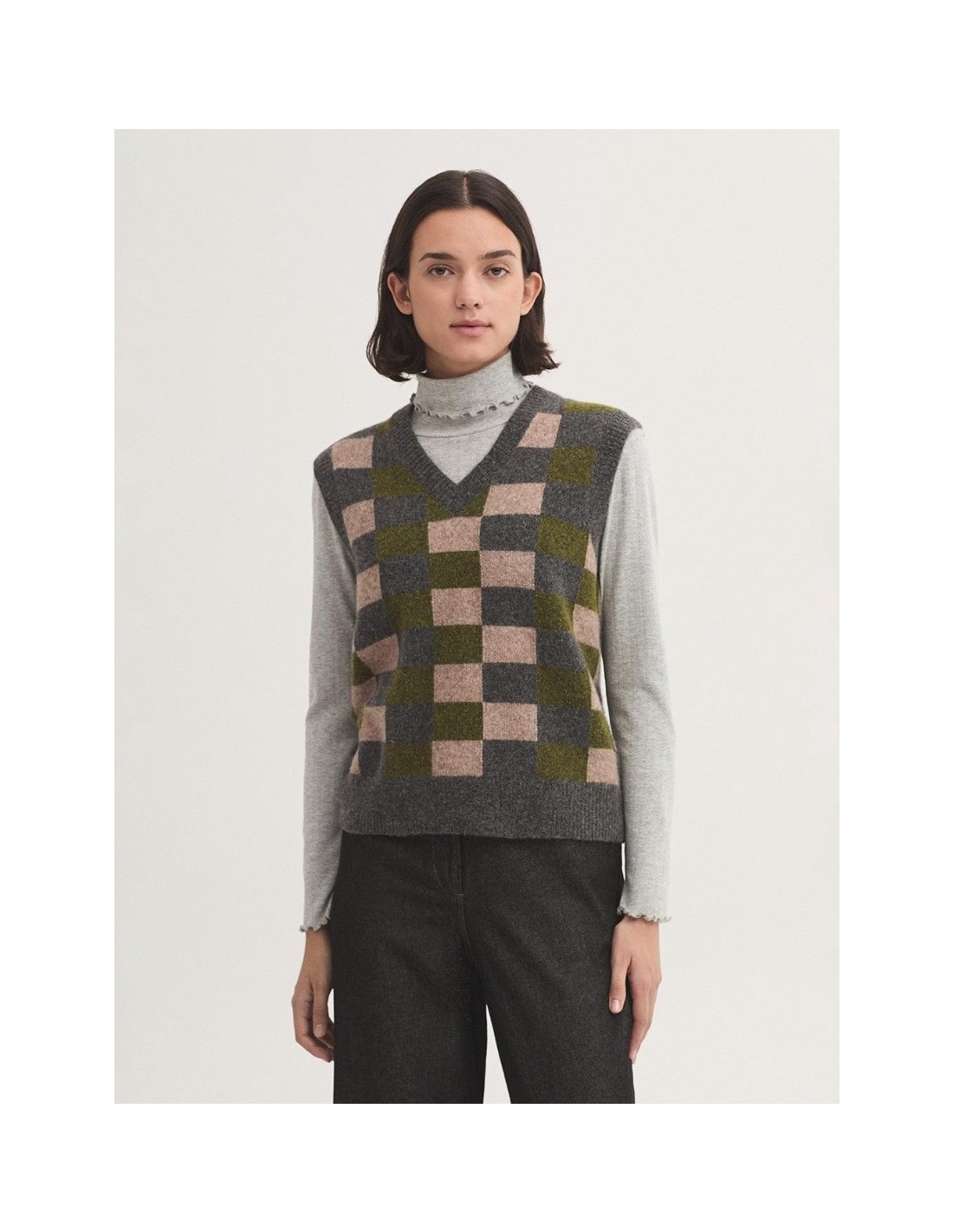 Chaleco de lana Lambswool con estampado de cuadros en la parte delantera de la marca Nice Things, cuello pico y acabados en ribete acanalado.