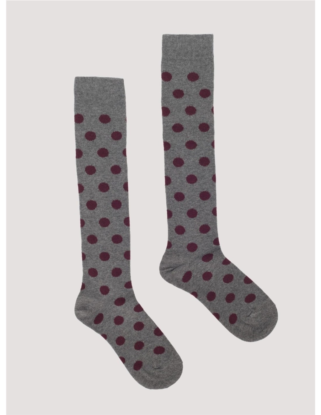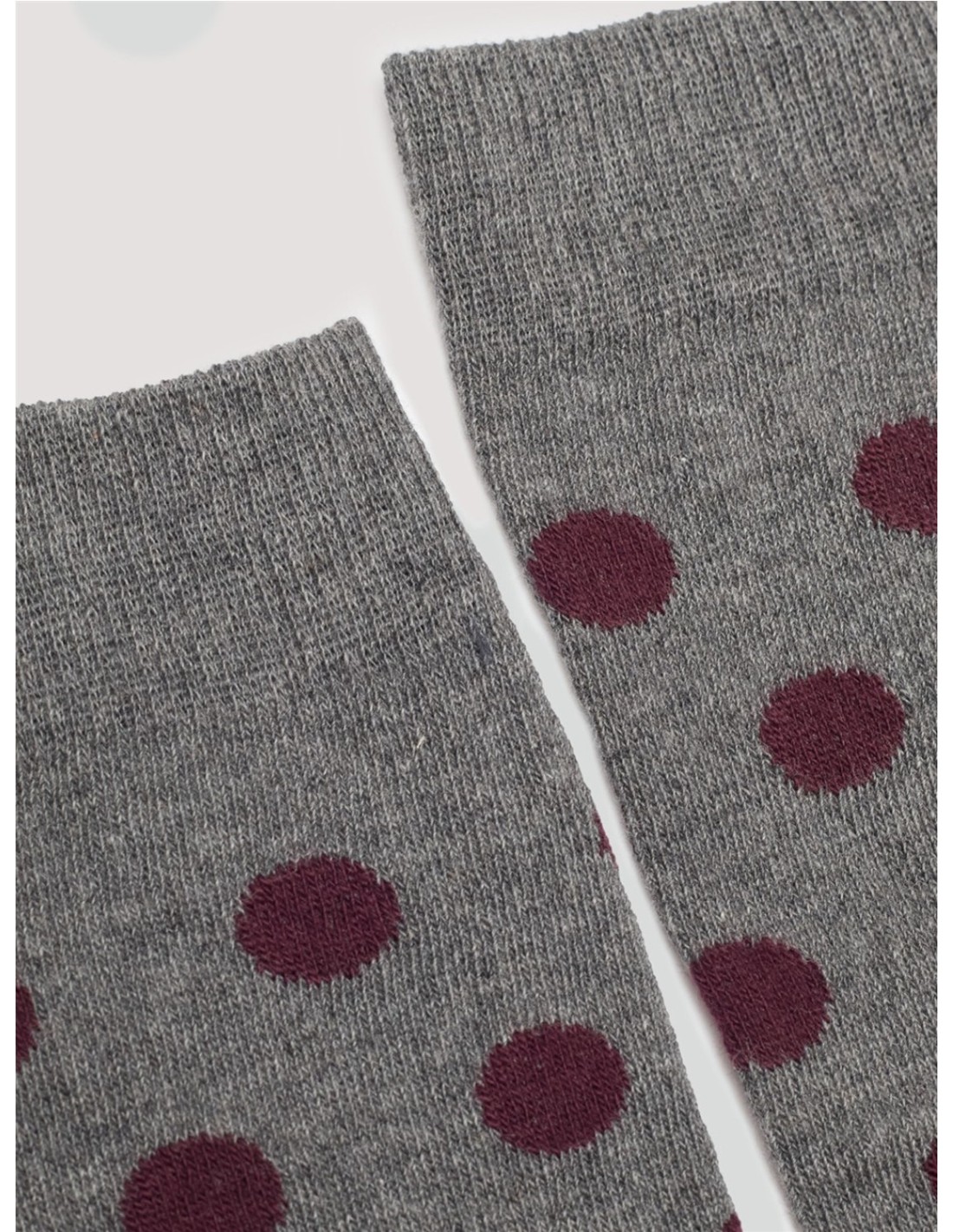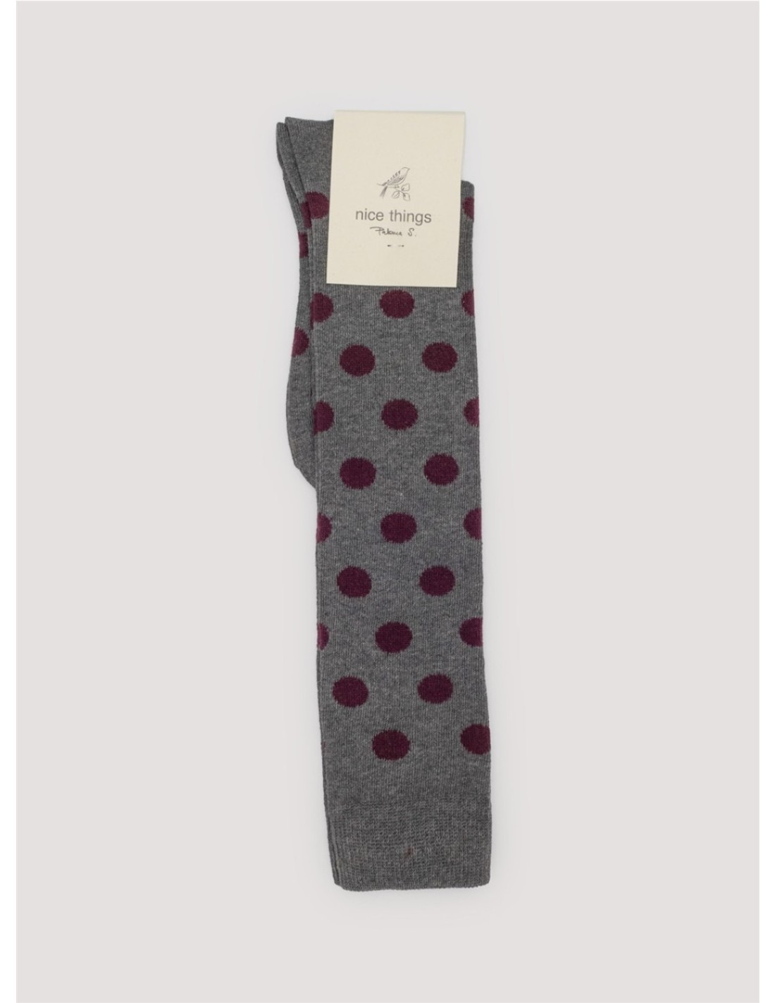 Calcetines extralargos de topos en color gris y burdeos de la marca Nice Things con acabado canalé.