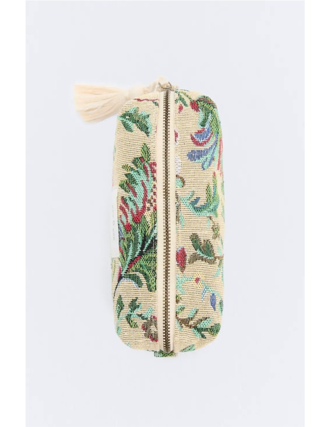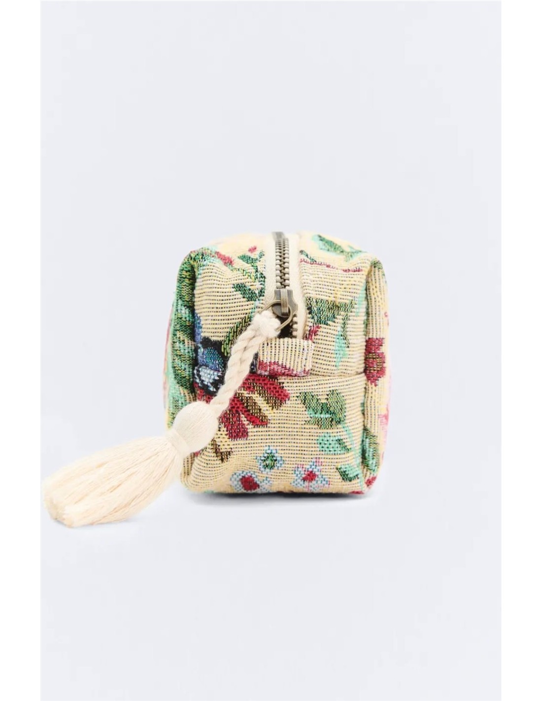 Neceser de tejido jacquard de la marca Ese O Ese. Estampado floral. Con cierre de cremallera. Forro de algodón.