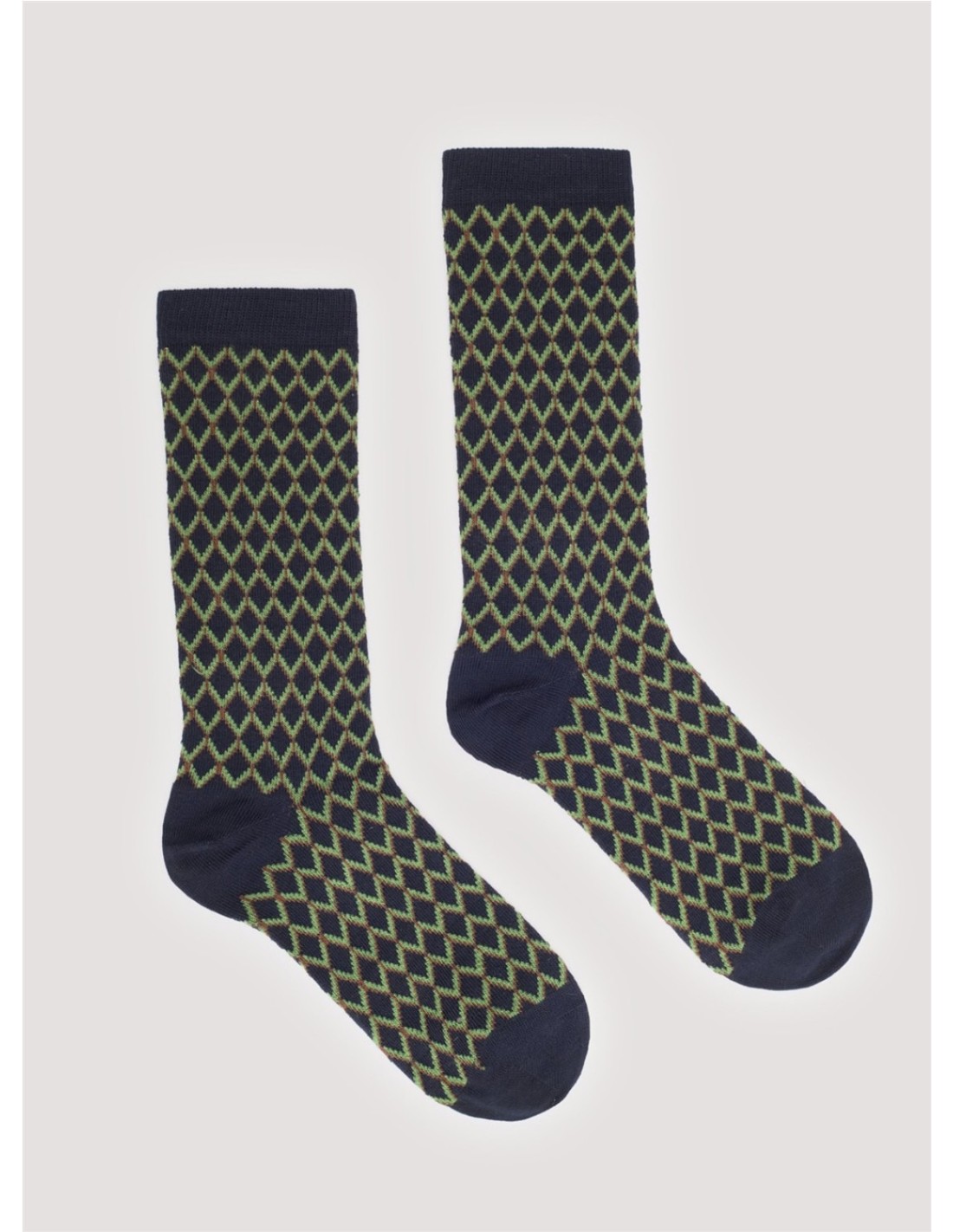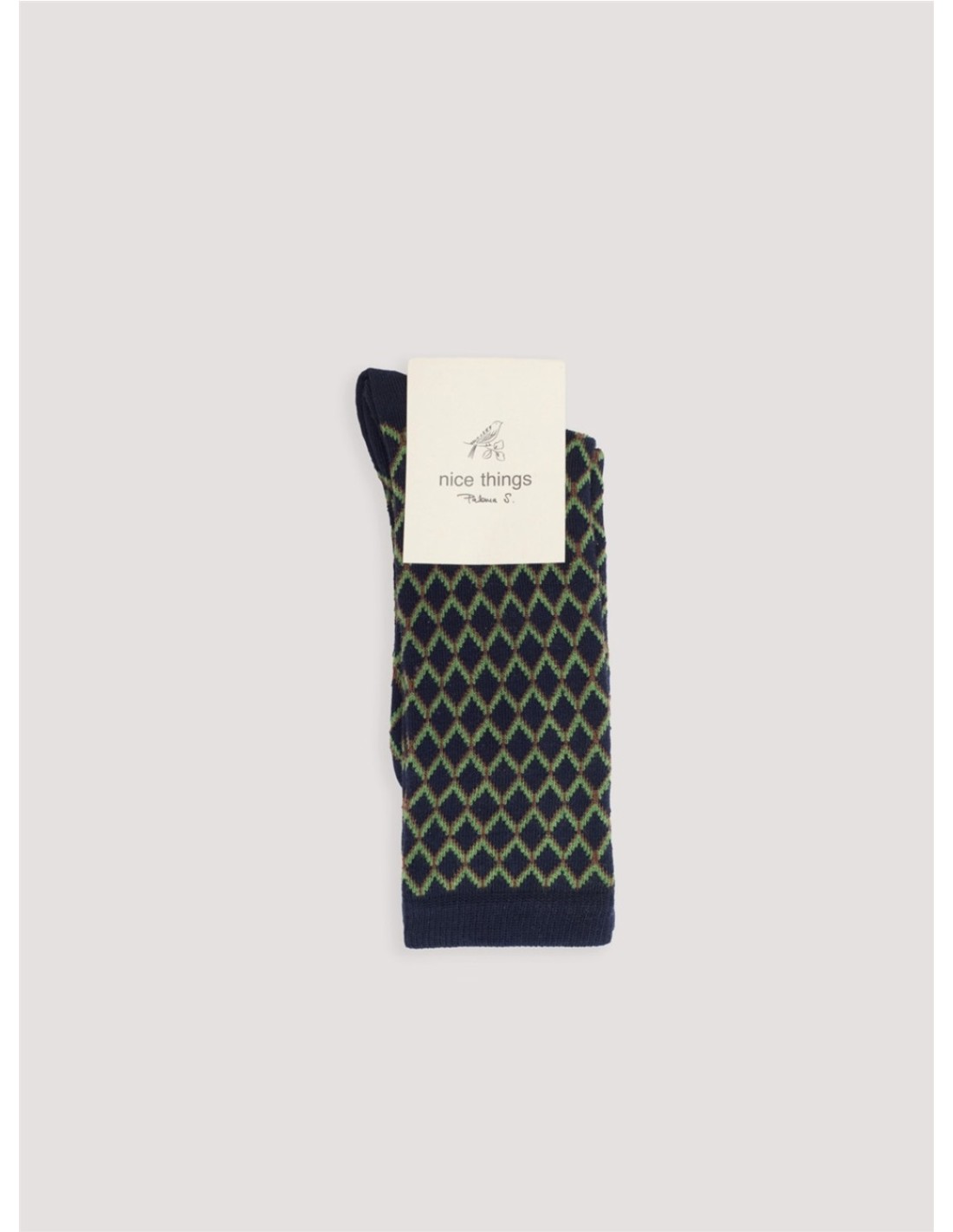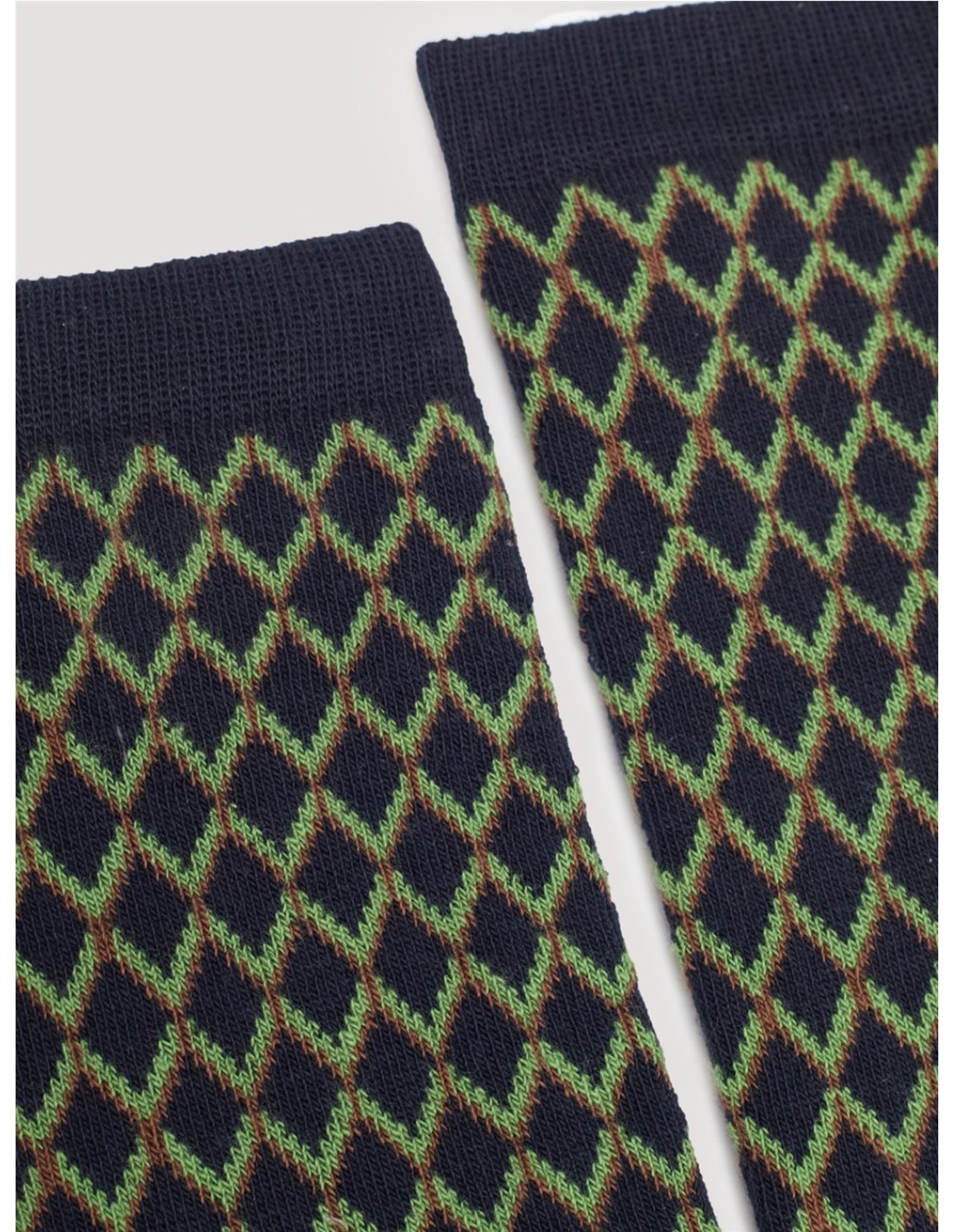 Calcetines largos rombo geométrico con acabado canalé en color verde y marino de la marca Nice Things. Made in Spain.