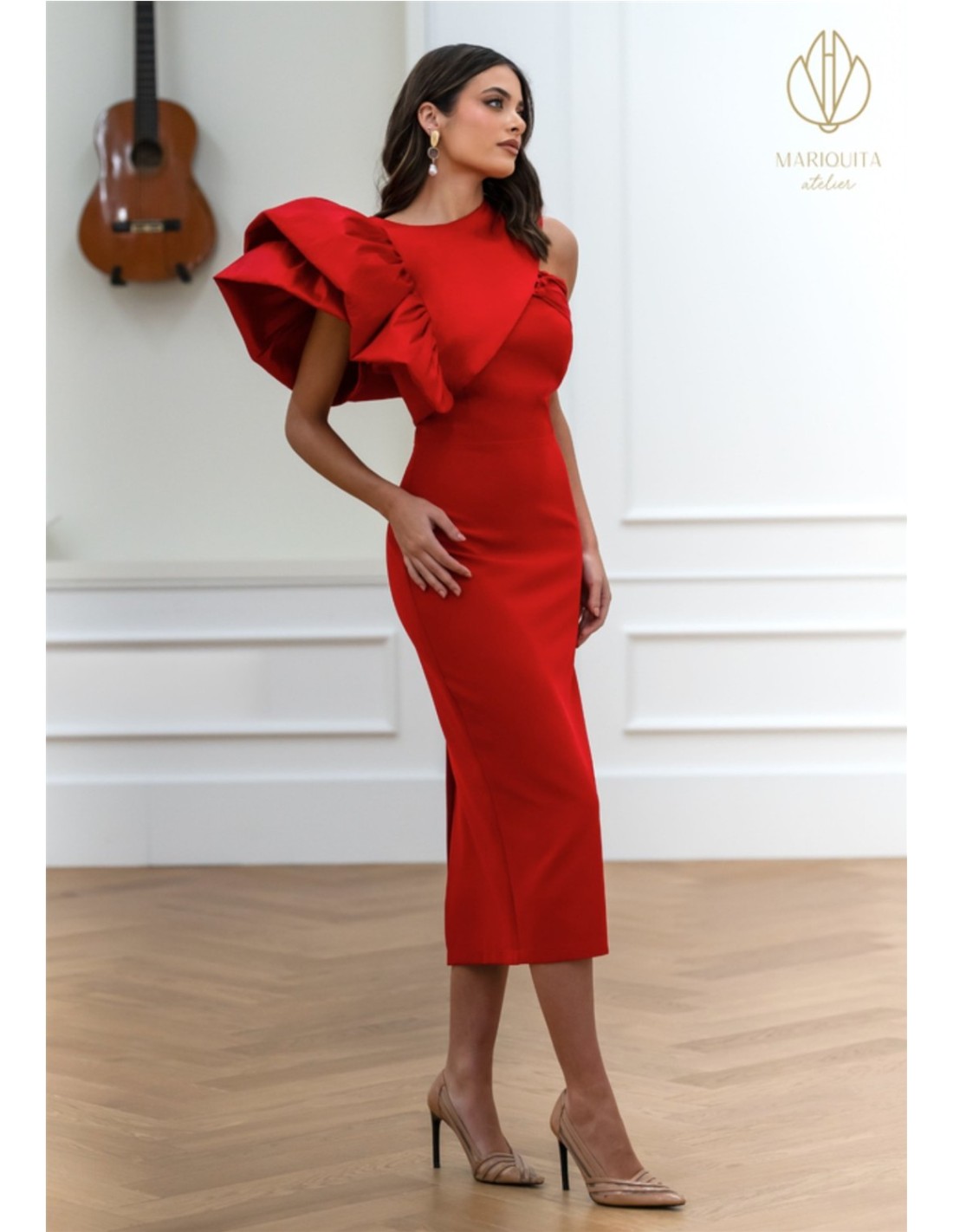 Dispone de desmontable para poner encima del escote y tener manga abullonada y lateral abotonado.