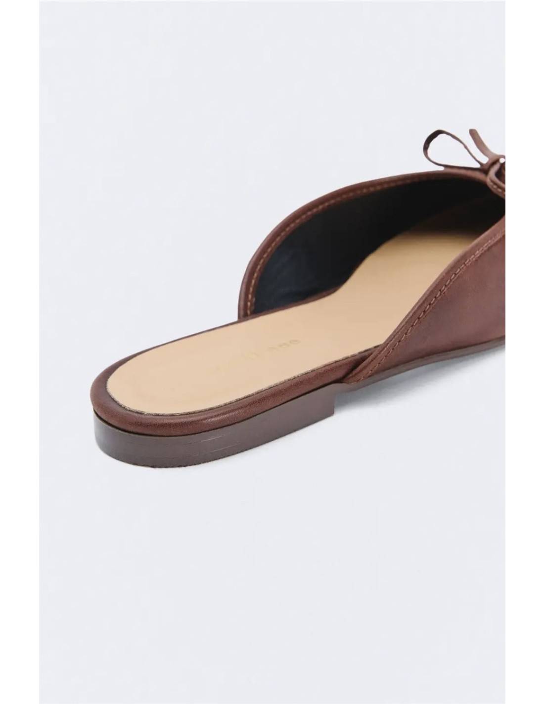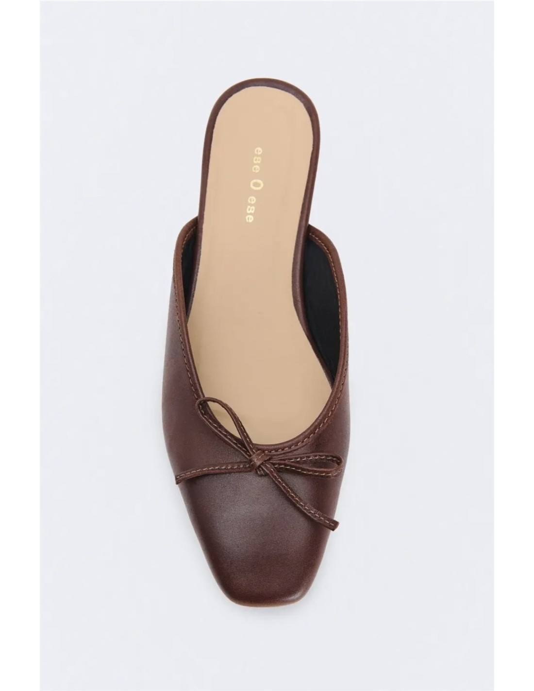 La bailarina Anne es un zapato plano elegante confeccionado en piel, en color marrón chocolate, que combina sencillez y sofisticación en un diseño atemporal.